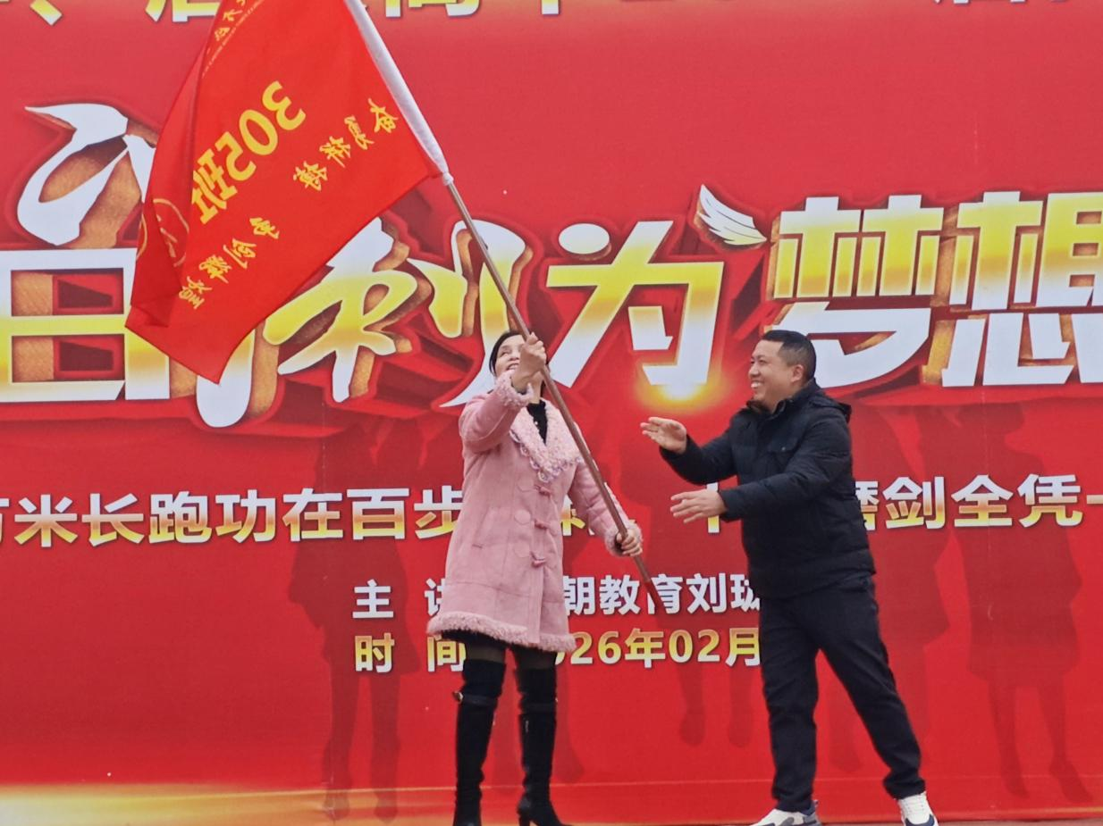 旗帜猎猎,使命在肩,授旗仪式,凝聚信念。校长为高三年级授予战旗,年级主任为各班班主任授旗,一面面鲜艳的旗帜迎风飘扬,承载着学校的重托、师生的期盼。授旗仪式不仅是责任的传递,更是信念的传承,象征着高三全体师生凝心聚力、奋勇争先的决心,寓意着以旗为令、冲锋向前,全力以赴冲刺高考,为梦想、为荣誉、为学校续写荣光。