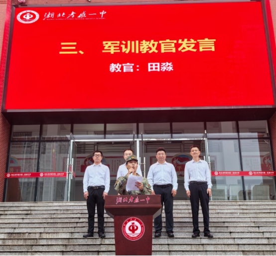 第四项,夏以祥校长发表了热情洋溢的动员讲话。他首先对教官们表示热烈欢迎和衷心感谢,并向踏入人生新阶段的高一新生们表示祝贺。夏校长强调了军训对于高中生培养爱国主义精神、增强组织纪律观念、锻造顽强意志品质的重要意义。他向同学们提出了三点期望:一是要端正态度,刻苦训练,磨练坚强意志;二是要尊重教官,听从指挥,培养优良作风;三是要注意安全,互帮互助,增强集体荣誉感。他相信,经过军训的洗礼,同学们必将以更挺拔的姿态、更饱满的精神迎接未来的学习生活挑战。