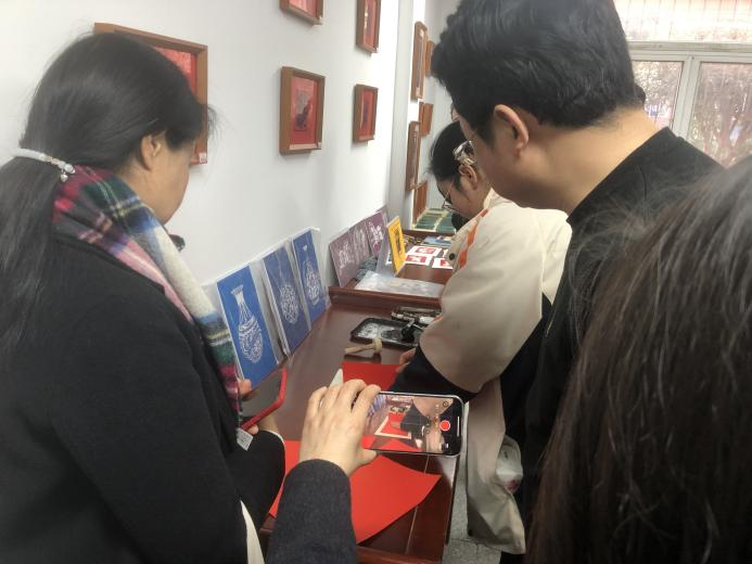 随后,与会嘉宾一同走进木刻版画工作室,实地参观学生版画作品,现场观摩学生木刻、印制等创作过程,对社团建设环境、教学成果与学生创作状态给予高度评价。