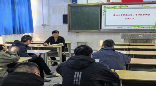 颁奖仪式结束后,高二年级班主任、备课组长例会紧接着在年级走班教室召开。会议由年级副主任徐群先主持,全体参会人员围绕11 月工作复盘与 12 月重点任务部署展开深入交流,为接下来的教育教学工作明确方向。