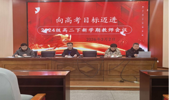 春启今朝踏歌行,逐梦奋发正当时。为全面总结上学期教学工作得失,精准谋划新学期教学管理方向,凝聚全体教师育人合力,2026年3月2日,孝感一中高二年级在学校报告厅召开下学期全体教师会,为新学期高二年级教育教学工作高质量开展锚定方向、明确路径。