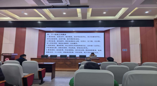 会议伊始,负责教学工作的年级副主任徐群先围绕上学期期末考试成绩展开全面细致的质量分析。他以详实的数据为支撑,从年级整体成绩、各学科均衡发展、学生学情表现等多个维度进行深度剖析,既肯定了上学期教学工作中取得的阶段性成果,也客观指出了教学过程中存在的短板与不足,并针对性地提出了改进建议,为后续教学工作的精准发力提供了科学指导。