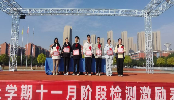 大会首先进入表彰环节。年级组对在秋季阶段检测中取得优异成绩、进步显著以及在日常学习中表现突出的同学以及在本次班级PK挑战赛当中获胜的班级进行了集中表彰。