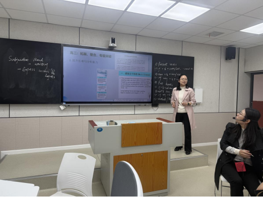 课后,李文博老师围绕教学设计思路、课堂生成与教学反思进行简要说明。学科中心主任冯艳老师对本节课给予高度评价,认为本课情境鲜活、设计精巧、技术融合恰当、育人导向鲜明,实现了知识传授、能力培养与价值引领的统一,为全区高中英语语法教学提供了可复制、可推广的优秀范例。