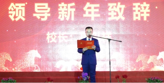 校长夏以祥同志登台致辞,向全体师生致以诚挚的节日祝福,他回顾了过去一年学校取得的丰硕成果,对全体师生和关心帮助学校发展的各界人士表示感谢,号召全体师生怀揣温暖和力量,继续青春远征。